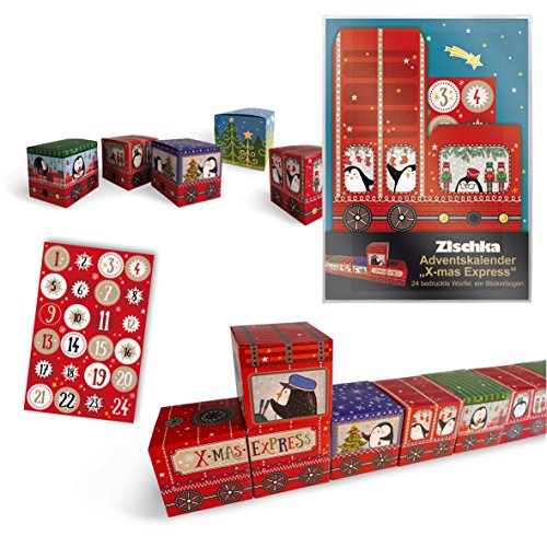 Bords 24 glaçons en 7 Différents Designs, Lok 3 cube wagons 15, forêt 6 dés, y compris 24 autocollants avec chiffres 1-24 train de Noel peut être construite selon vos souhaits. Taille des dés : 6 x 6 x 6 cm - Livré non monté.