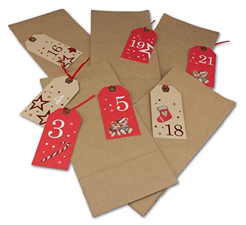 Sacs en papier cadeau stables et robustes avec pendentif en forme de chiffres (numéro 1 - 24) pour bricoler et remplir votre calendrier de l'avent créatif DIY !